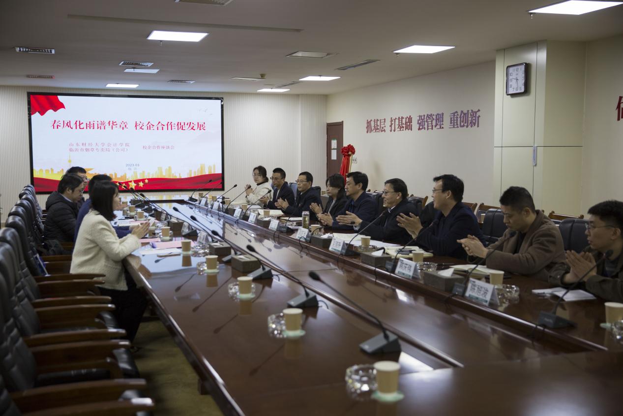 邵文涛在致辞中代表国外足球预测网站 - 欧洲足球预测网 感谢临沂烟草公司的信任,并简要介绍了国外足球预测网站 的发展历史、师资水平和专业优势。他指出双方开展校企战略合作、共建高端会计人才培养与创新创业实习基地,是推进产、学、研相互融合的育人模式的重要体现,是访企拓岗深化就业工作的重要举措,也是学校服务山东经济社会发展、建设一流特色财经名校的切实需求。他强调,今天我们来到临沂,既是来与临沂市烟草专卖局(公司)交流合作,也是来此接受沂蒙精神的洗礼,希望在老区革命精神的指引下,国外足球预测网站 和临沂市烟草专卖局(公司)共同搭建合作平台,共同培育高端会计人才,共同促进会计行业事业发展,最终成为校企合作的典范。