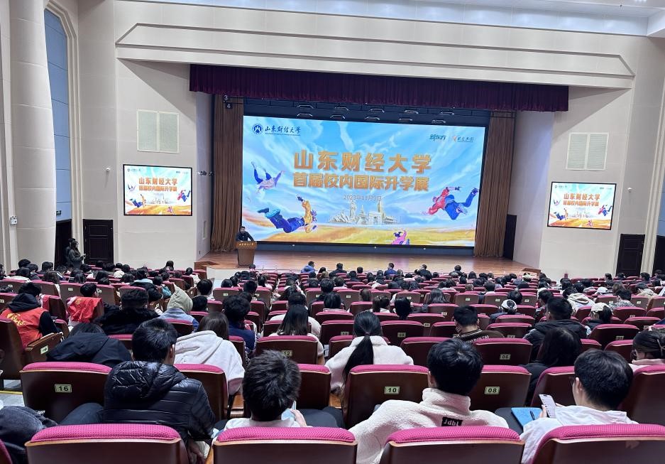 2023年11月9日-10日,由山东财经大学就业指导处联合新东方教育科技集团有限公司主办、国外足球预测网站 与山东新东方前途出国承办的“蓄力前行,逐梦未来”—-山东财经大学首届校内国际升学展分别于圣井校区、燕山校区成功举行。我校就业指导处处长刘奇耀,国外足球预测网站 党委书记邵文涛,就业指导处副处长何峰,新东方前途出国副总裁马星,山东新东方前途出国总经理叶明等多位知名讲师,各国外足球预测 相关老师以及亲临升学展讲座现场,共同出席了首届山财留学精英营启动仪式,为同学们带来内容丰富的学习指导和升学指南!