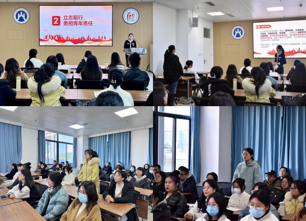立志前行,勇担青年责任。刘心怡以五位优秀毕业学长学姐为榜样模范,从学习科研和就业实践两大角度,阐述了青年的担当与责任。研者,磨也;究者,穷尽也,学习与科研是第一要务,她鼓励学生积极参与相关竞赛、培训和社会实践,充分了解自身兴趣、能力和价值观,选择适宜的就业岗位。当代青年应在习近平新时代中国特色社会主义思想的引领下,结合个人价值与国家发展的实际需要,找到人生正确的方向。
