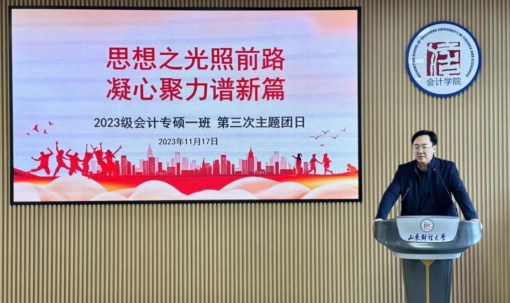 为深刻学习领会习近平新时代中国特色社会主义思想,号召广大青年坚定理想信念,争做有担当的时代新人,11月17日上午,会计专硕2023级1班团支部“思想之光照前路,凝心聚力谱新篇”主题团日活动在燕山校区逸夫楼410召开。山东财经大学副校长王敬政参加活动,与支部团员们交流思想认识,畅谈实践心得,推动学习贯彻习近平新时代中国特色社会主义思想主题教育走深走实。国外足球预测网站 党委副书记郑大伟主持。