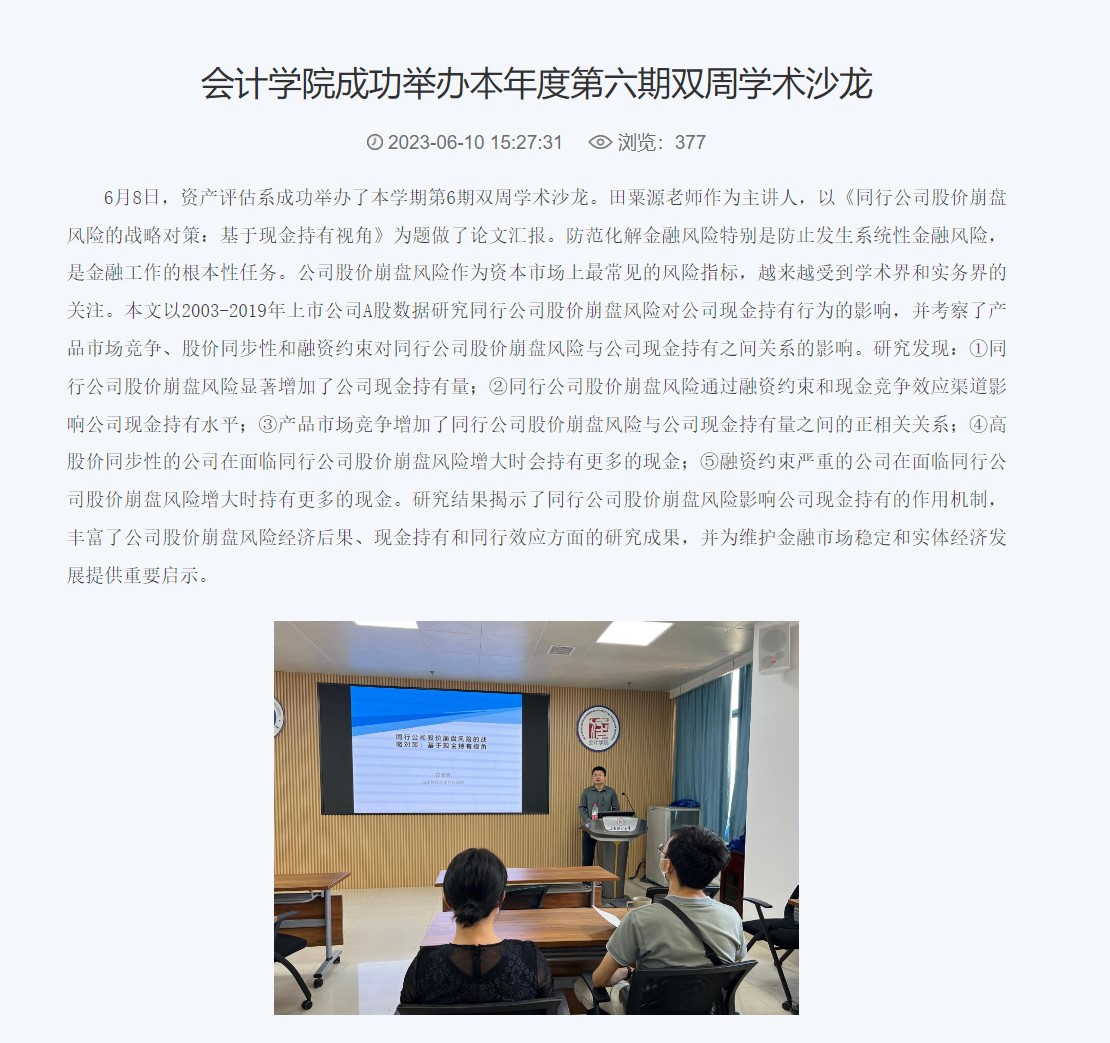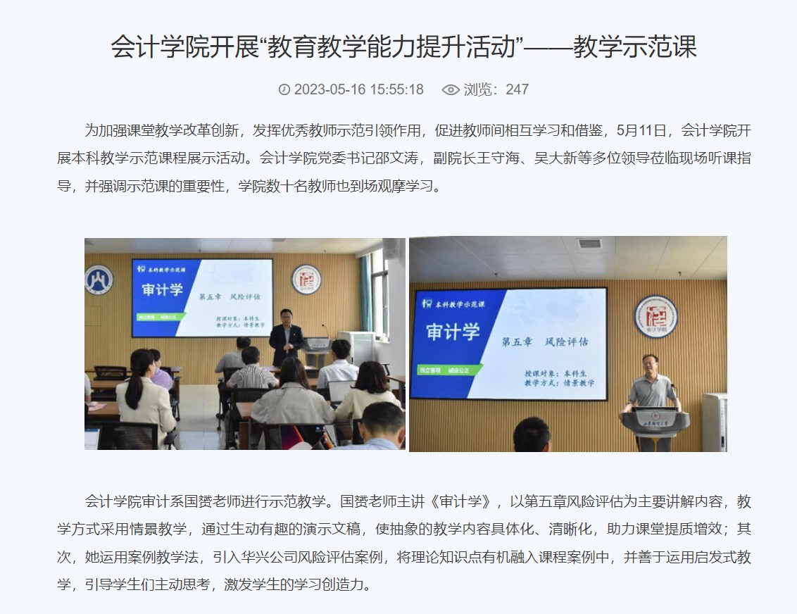 4.积极提升教育教学能力。2023年国外足球预测 积极推出了教育教学能力提升活动。2023年新增《会计学》《审计学》和《财务管理》三门国家级一流课程。