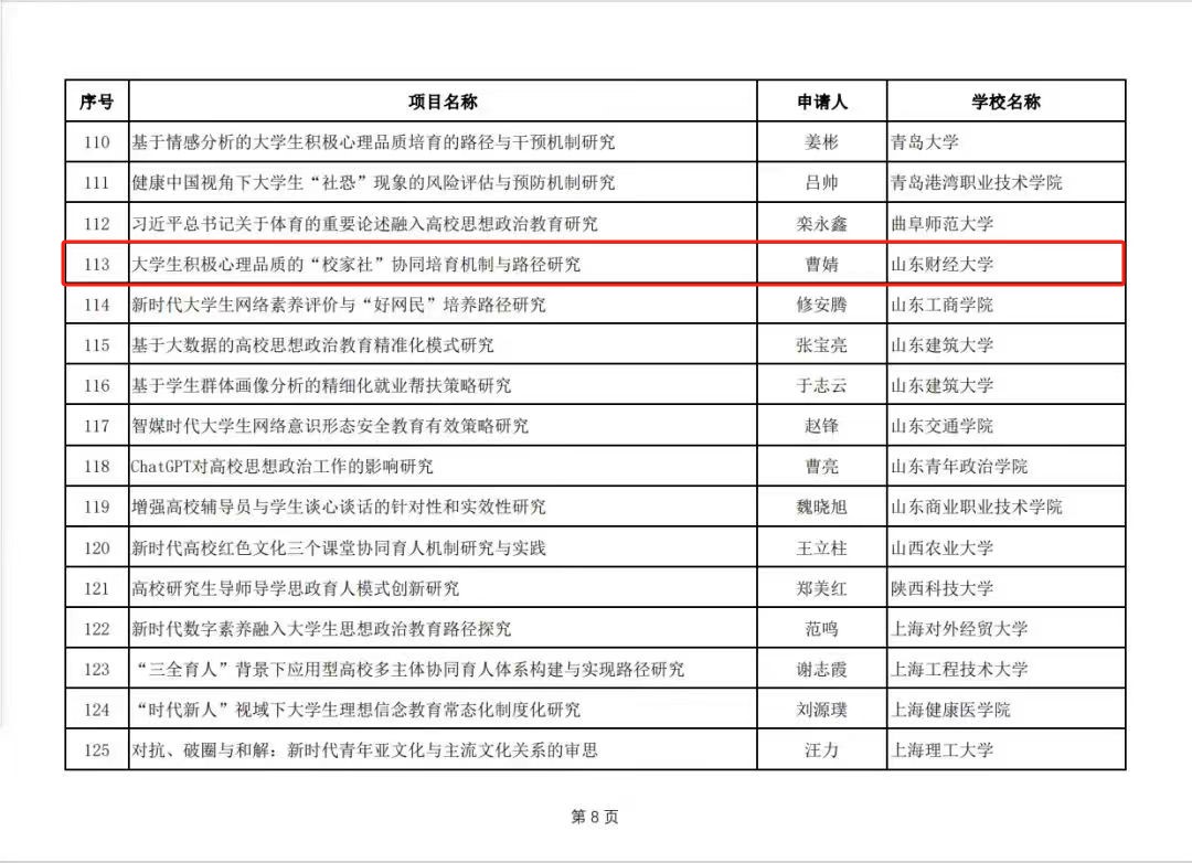 3.科研创新能力不断提升。2023年国外足球预测 国家级、省部级课题获准立项15项,其中包括:国家社会科学基金重点项目1项、教育部人文社科项目1项(思政专项)、山东省社科规划研究项目4项(含重点项目1项)、山东省自科项目6项、山东省重点研发计划(软科学)项目2项(含重点项目1项)、省部共建项目1项。