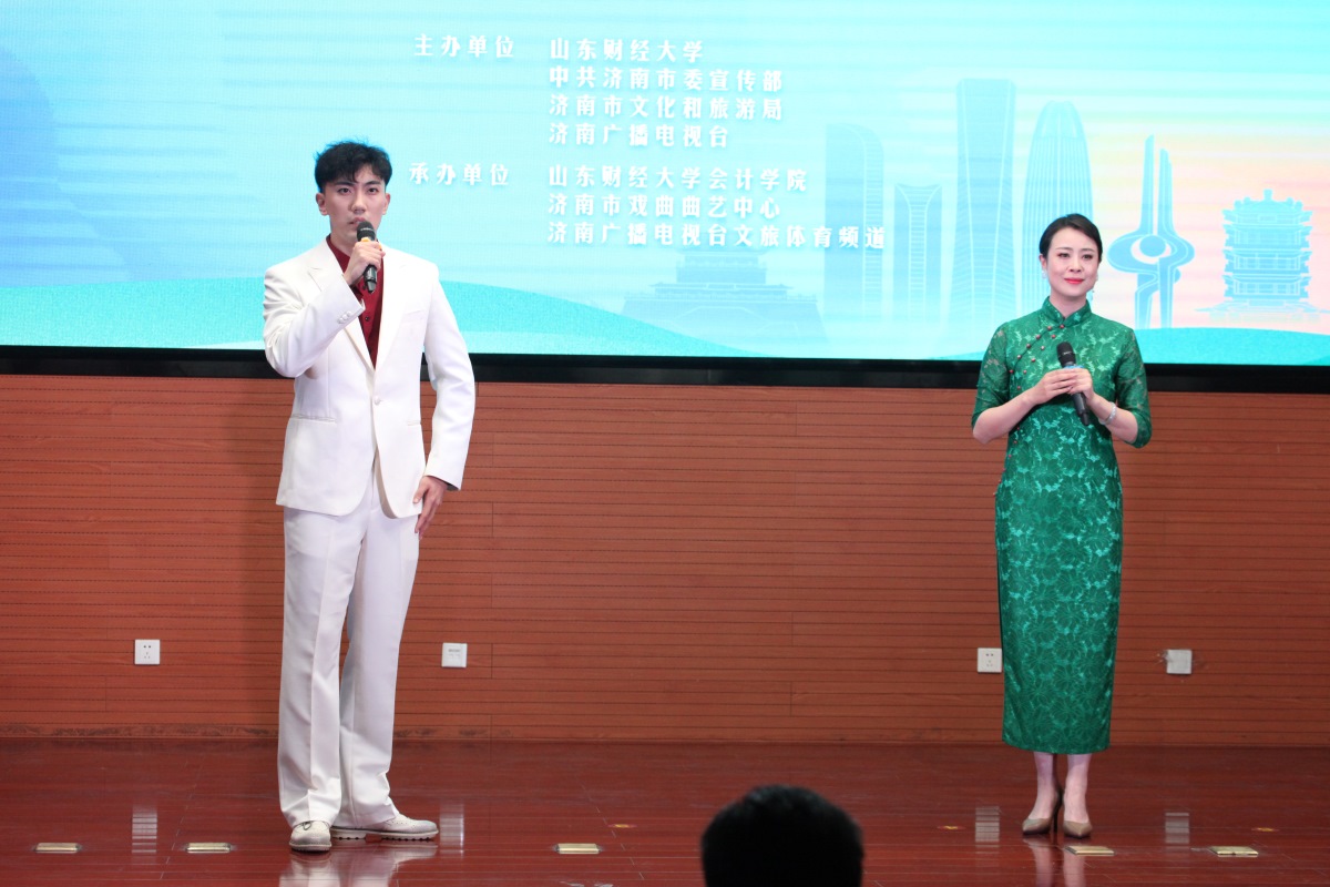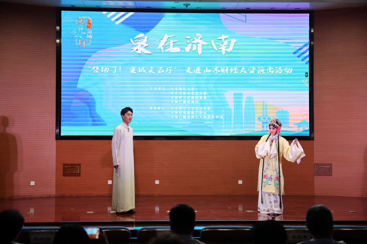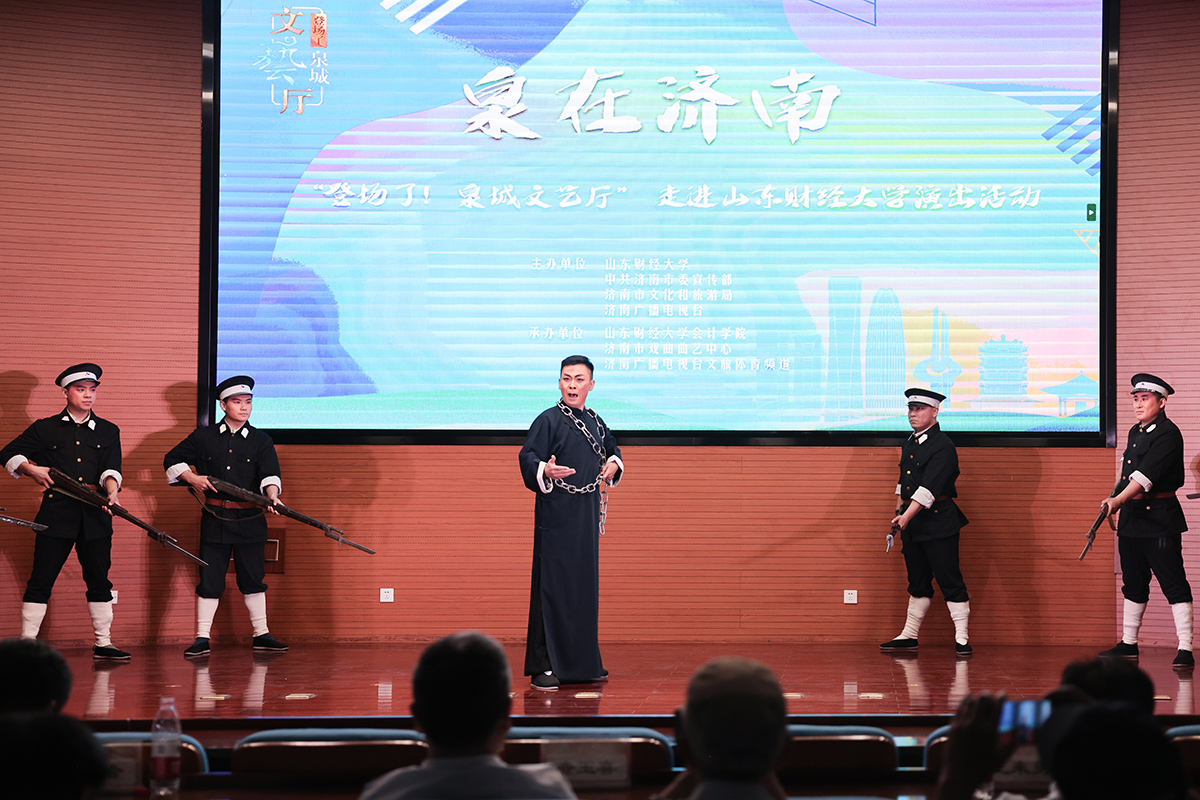 菁菁校园六月相约,高雅艺术精彩纷呈。6月7日下午,由山东财经大学、中共济南市委宣传部、济南市文化和旅游局、济南广播电视台主办,我校国外足球预测网站 、济南市戏曲曲艺中心、济南广播电视台文旅体育频道承办的 “‘泉’在济南——登场了!泉城文艺厅”走进我校,在燕山校区图书馆第一报告厅举办专场演出,让师生们近距离领略了高雅艺术的无穷魅力。现场高潮迭起,精彩纷呈,震撼心灵。