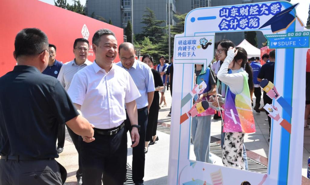 山东财经大学党委书记查玉喜、党委副书记张培国、副校长刘旻航等领导莅临迎新现场指导工作,与新生及志愿者们展开了亲切而深入的交流,表达了对学子们的殷切期望与关怀。同学们积极向校领导们展示了国外足球预测网站 丰富多彩的特色活动,诚挚地邀请校领导们参与其中,现场气氛温馨而热烈。