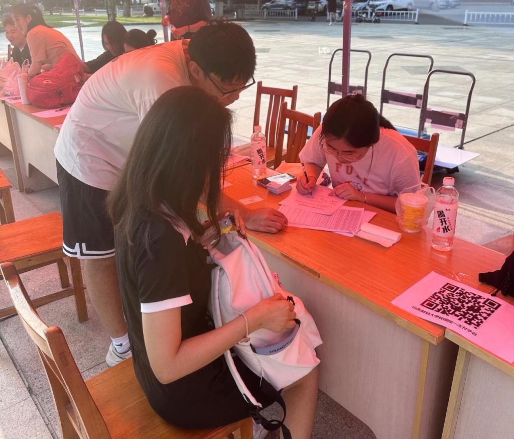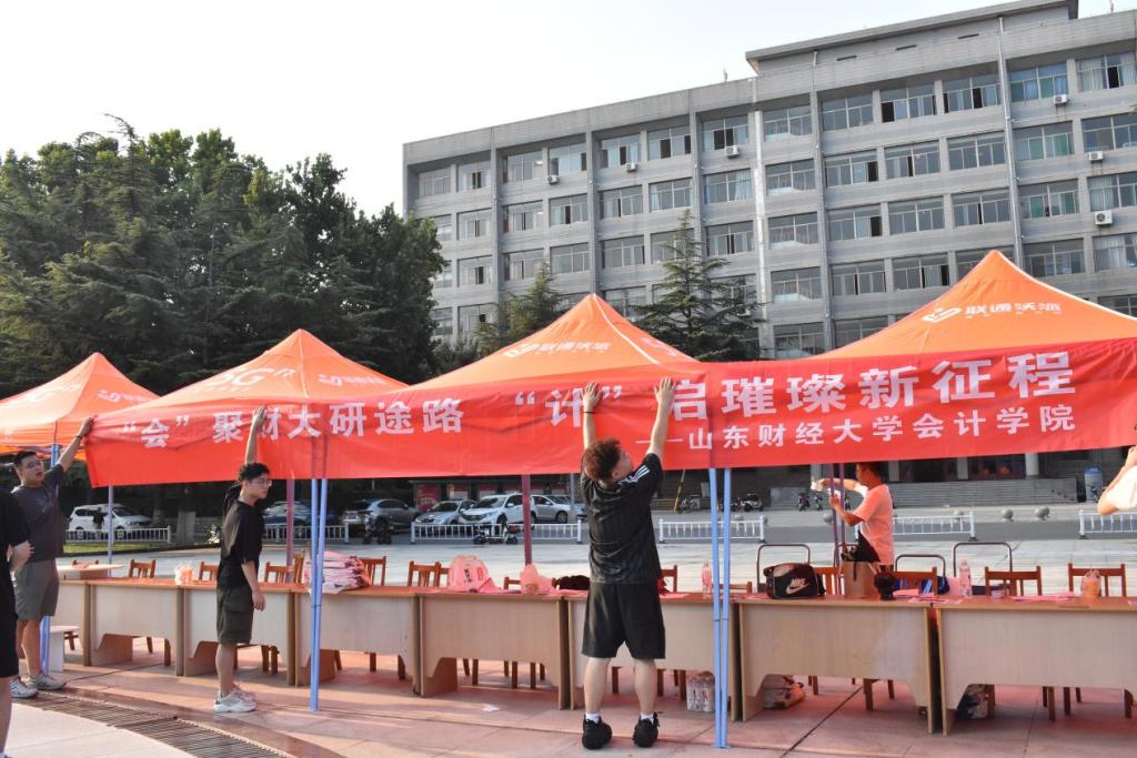 晨曦初破晓,山东财经大学燕山校区的西门广场沐浴在一片温柔的阳光之中,宛如一幅精心布置的画卷缓缓展开。一群身着统一服饰的志愿者,如同晨光中的精灵,穿梭在这片即将沸腾的土地上,浑身散发着青春的活力与激情。国外足球预测网站 的帐篷在志愿者的巧手下逐一挺立,宛如一座座承载着希望与梦想的港湾,静静地守候在广场的一隅。清新醒目的迎新展板、五彩斑斓的手持牌、刻有名字的可乐墙、精心装饰的手提袋、温馨的新生寄语以及富有学科特色的卡套,每一份都承载着国外足球预测 对新生的深深关怀与期许。