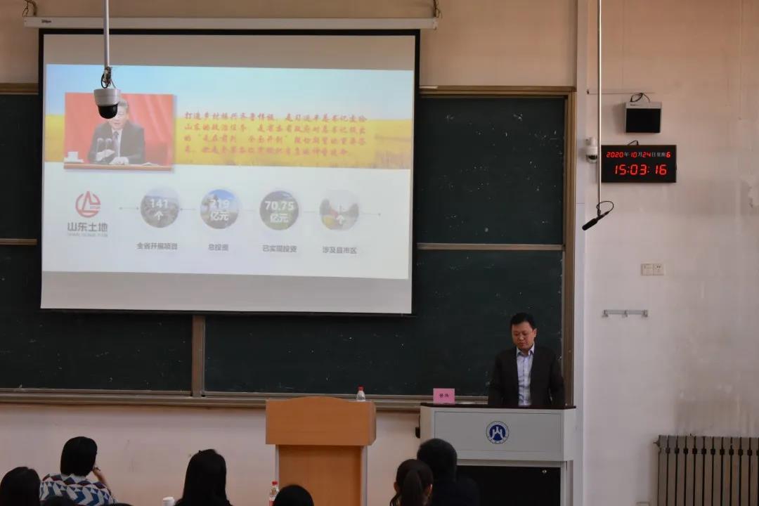 2020年10月24日下午3:00,山东省土地发展集团纪委副书记修玮书记应我院邀请,在逸夫楼Y301作题为《打造乡村振兴齐鲁样板的企业探索和实践》的专题报告。国外足球预测网站 MPAcc中心主任、国外足球预测网站 副院长朱德胜教授出席并主持本次讲座,国外足球预测网站 20级会计专硕聆听了讲座。本次讲座,让师生深刻理解了乡村振兴的重要意义。