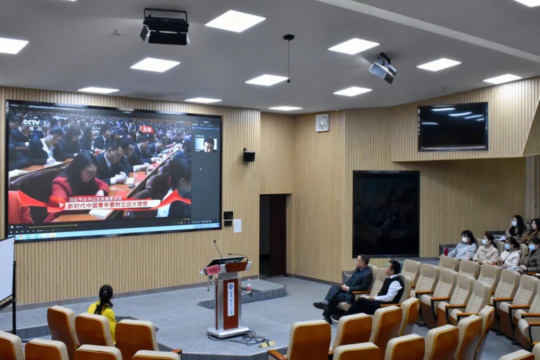 首先,贠庆怀让同学们观看《习近平在纪念五四运动100周年大会上的讲话》,习近平总书记在讲话中激励同学们要树立远大理想,担当起时代重任,做时代前列的奋进者和开拓者。