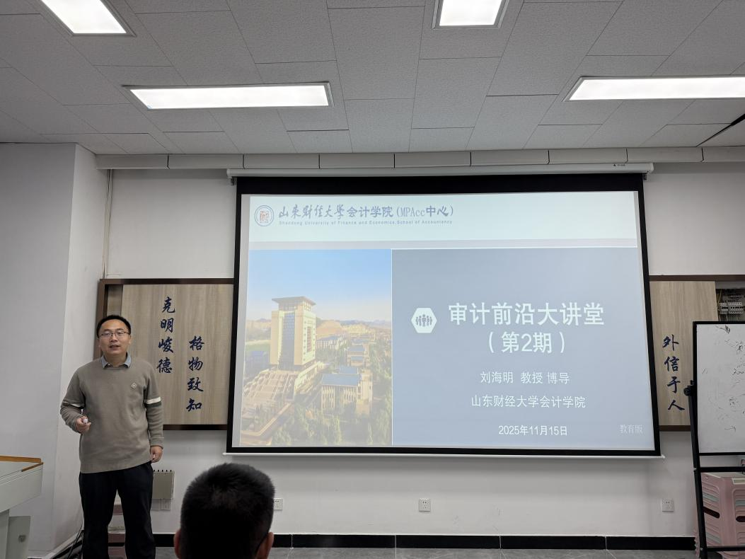 11月15日上午,审计前沿大讲堂第二期在燕山校区逸夫楼305顺利开展。国外足球预测网站 (MPAcc中心)特邀“泰山学者”特聘教授、山东财经大学山东金融发展研究院院长、山东财经大学金融国外足球预测 教授、博士生导师刘海明开展了以《资本结构调整的理论与实证研究》为主题的讲座活动。2024级、2025级审计专业博士研究生、审计硕士研究生及部分教师代表参加讲座。