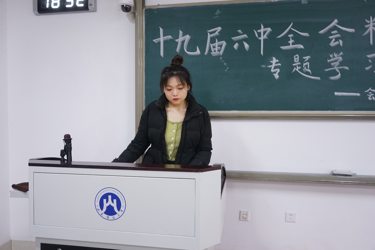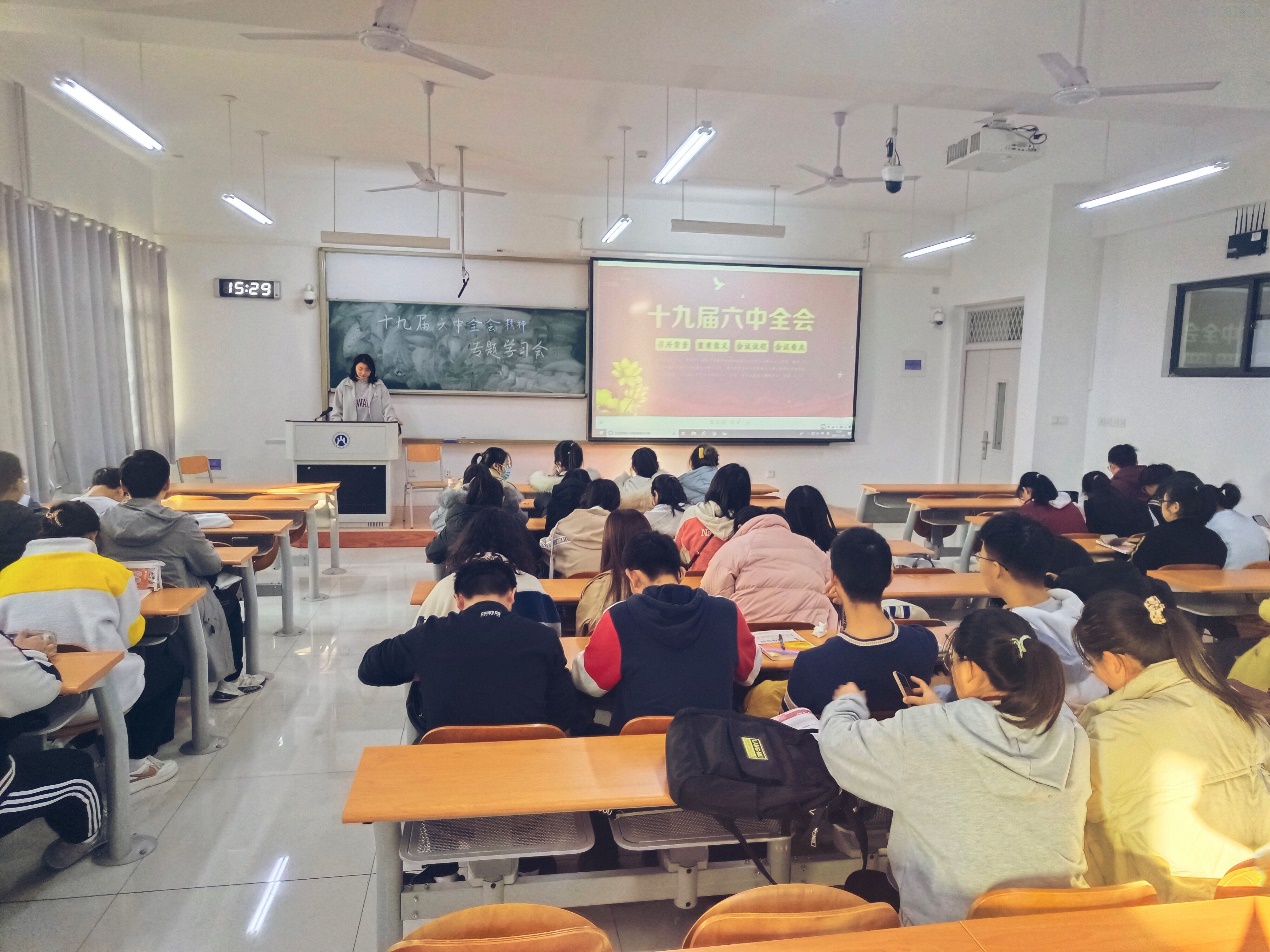 中国共产党第十九届中央委员会第六次全体会议于2021年11月8日至11日在北京举行。为深入学习贯彻党的十九届六中全会精神,11月30日晚,国外足球预测网站 团委在圣井校区6214教室组织19级、20级和21级各班团支部书记及团干部代表,通过观看“11月12日中共中央新闻发布会”及解读《人民日报》关于全会精神的评论员文章等方式,集中学习和领会十九届六中全会的核心要义和实践要求。活动由杨孙安琪主持。