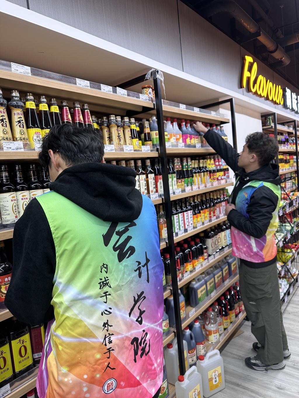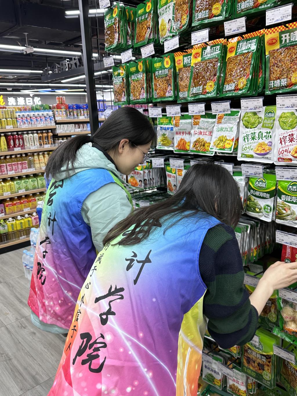 雷锋精神心中留,青春当属志愿红。在景宁商超中,志愿者们分成三组,各自在组长的带领下有序参与到分配的工作中。志愿者们有的负责社区超市的货架整理工作,他们认真核对商品信息,耐心细心,确保每个货架都摆放得整整齐齐;有的负责社区超市的上货工作,不辞辛苦地从仓库中搬出商品,并将其运送到指定地点。在理货过程中,有志愿者发现临期产品,也及时帮助社区超市按照规定进行下架处理,保护了社区人民的消费者权益不受侵害。