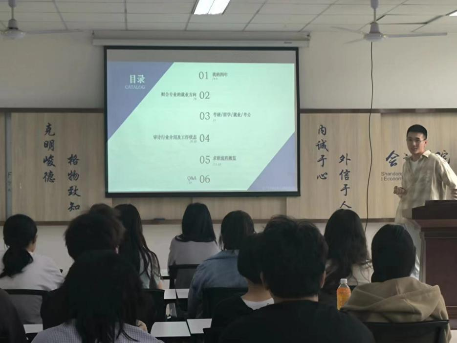 娄智淳以自己的求职经验和成长经历为切入点,详细介绍了财会专业的就业方向、毕业的多种去向、审计行业介绍和工作状态以及求职的流程。其中,他具体介绍了会计师事务所的招聘与求职流程概览,并以实习招聘要求为例,分析了事务所对招聘人才的基本要求。他以自己的实习经验为例,着重讲述了尽早开始实习和求职找工作与学好专业课同等重要、以及强调了英语的重要性。分析了提前主动接触就业环境、增加实习经验是求职过程中不可或缺的素质,同时要注重提高自己的信息搜集能力、信息处理能力和独立思考能力。鼓励同学们根据自身需求选择实习岗位,在实践中锻炼能力,提升素质。