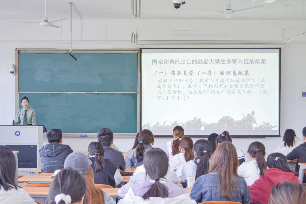 少年不惧岁月长,彼方尚有荣光在。相信同学们通过此次宣讲会,能进一步了解大学生入伍政策,增强对助力强军兴军的责任感。希望同学们志存高远、踔厉奋发、笃行不怠、立马昆仑,积极响应党的号召,肩负起时代重任,戎装披挂凌云志,不负青春少年郎。