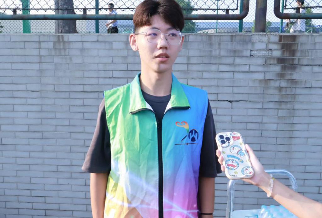 A:今天的天气比较热,加上新生很多,所以工作不是很轻松,不过能帮助到别人也是很开心的。