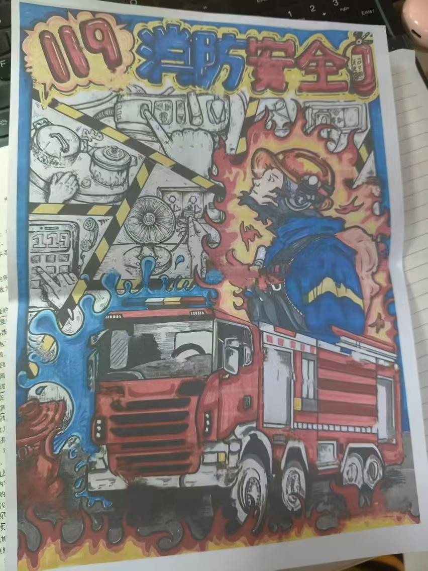 绘消防情,传安全声。本次活动中,同学们用画笔勾勒出以宿舍消防安全为主题的画报,积极地向同学们传递消防安全知识,分享自身见解。这不仅增强了同学们的安全意识,更增进了同学们对学校安全教育工作的认同感,帮助同学们树立正确的安全观念。