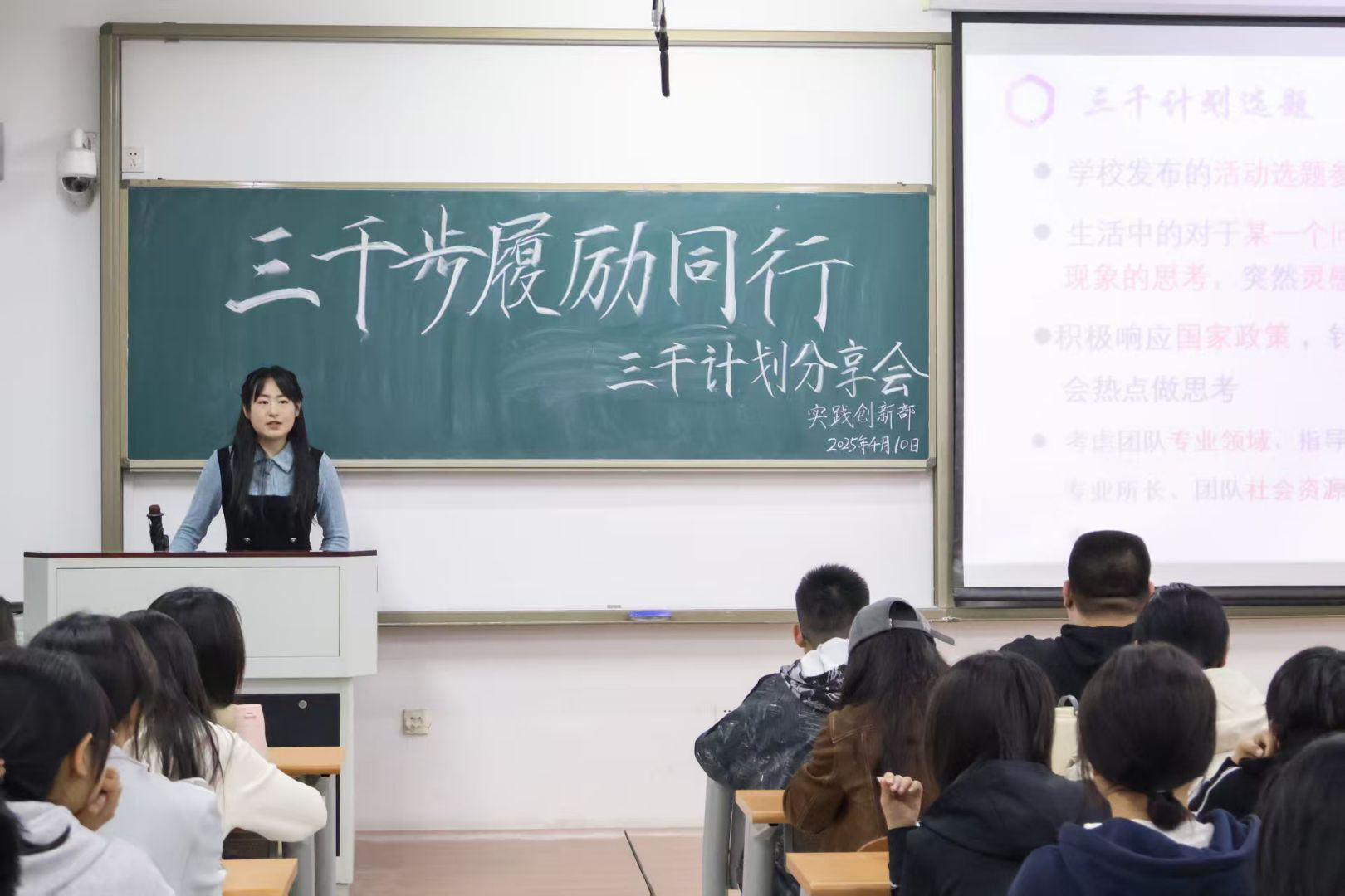 实践创新部王雅臻介绍了“三千计划”的概况、流程、意义及注意事项,阐述了其对学生成长与成果转化的积极作用。
