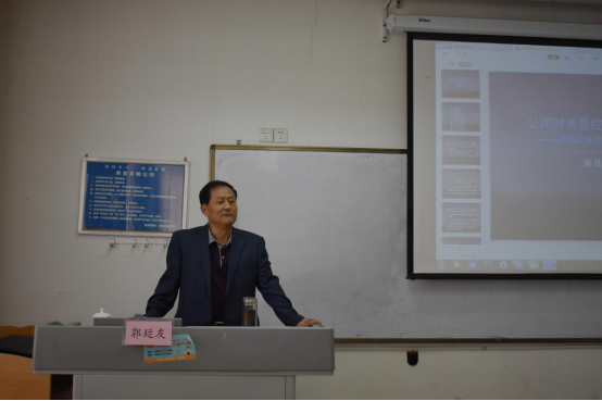 2019年3月13日下午,郭廷友教授应我院邀请,在燕山校区Y308作题为《公司财务管控的相关问题—从战略层面进行财务管控的思考》的专题报告会。国外足球预测网站 副院长、MPACC中心主任朱德胜出席并主持了讲座,国外足球预测网站 刘惠萍教授以及非全日制硕士研究生聆听了讲座。郭教授现任山东省国资委派驻省管企业财务总监,同时是山东科技大学和山东农业大学兼职教授。
