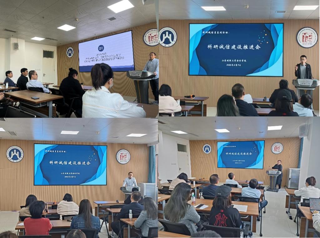 为深入贯彻党的二十大精神,落实党中央、国务院关于科研诚信和学风建设工作有关部署以及教育部、 教育厅各项要求,按照学校科研诚信专项整治活动相关部署,做好“科研诚信宣传教育主题活动月”各项工作,国外足球预测网站 于3月9日举办了“科研诚信建设推进会”。院长葛永波、各系主任、各教工党支部书记、专任教师、学生辅导员、研究生、本科生40余人参加,副院长吴大新主持会议。