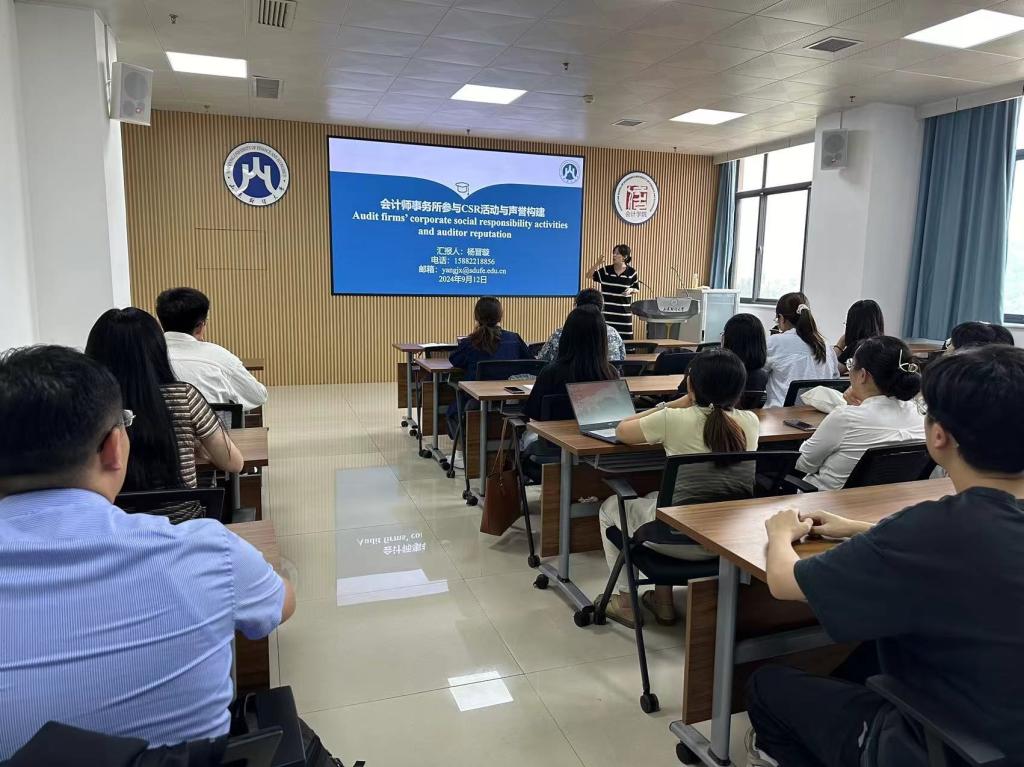 杨晋璇博士的报告题为“会计师事务所参与CSR活动与声誉构建”(Audit firms’ corporate social responsibility activities and auditor reputation)。报告中,杨晋璇首先介绍了论文的主要内容;该文试图探究会计师事务所参与CSR活动是否为有效的声誉提升机制。围绕论文投稿过程中收到的专家意见,杨晋璇从论文选题及贡献、论文的逻辑推演等方面,总结分享了该文的审稿意见回复和针对文章所进行的具体修改。最后,结合自己的切身体会,基于从论文写作到发表所面临的具体问题,杨晋璇从论文选题的直接性和研究的稀缺性、论文逻辑的严密性和表达的准确性,对审稿专家的意见的回应等方面分享了投稿经验。