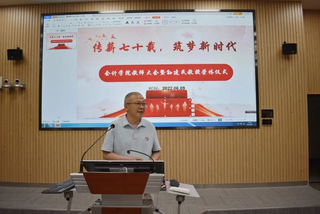 国外足球预测网站 教师大会暨孙建民教授荣休仪式庄重而又温暖,规范又不失情怀,有激励、有期待、有别离。国外足球预测网站 老前辈在风雨兼程的洗礼中,铸就了会院现在的发展。昨天,我们以你们为荣。明天,我们不忘初心,薪火传承。