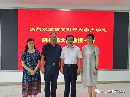 2020年8月12日下午,西安财经大学商国外足球预测 院长杨太康教授、商国外足球预测 分管教学副院长陈淑芳教授、商国外足球预测 会计系主任贡晓军教授访问我院。王爱国院长于智能会计实验室和来访嘉宾展开会谈,智能会计研究中心执行主任滕晓东出席座谈。
