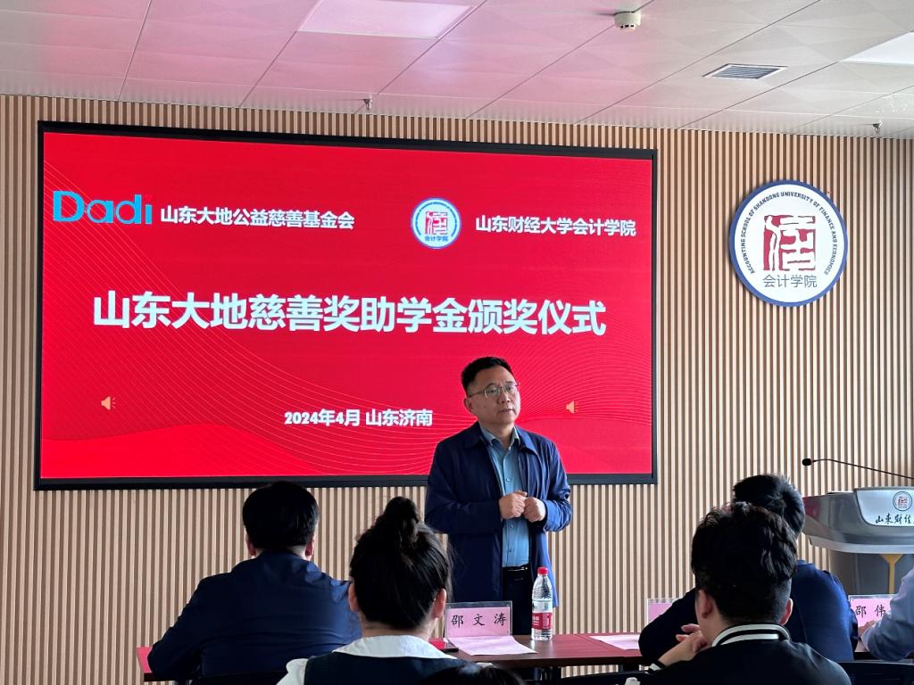 2024年4月11日,山东大地慈善奖助学金颁奖仪式在燕山校区逸夫楼举行,北京大地泰华会计师事务所(特殊普通合伙)执行事务合伙人于洋、人力资源总监陈晓培、人资部王若裴,山东财经大学合作发展处副处长邵伟然、学生工作处副处长周广春,国外足球预测网站 党委书记邵文涛、党委副书记钟毓卓,国外足球预测网站 教师代表、学生代表出席活动。