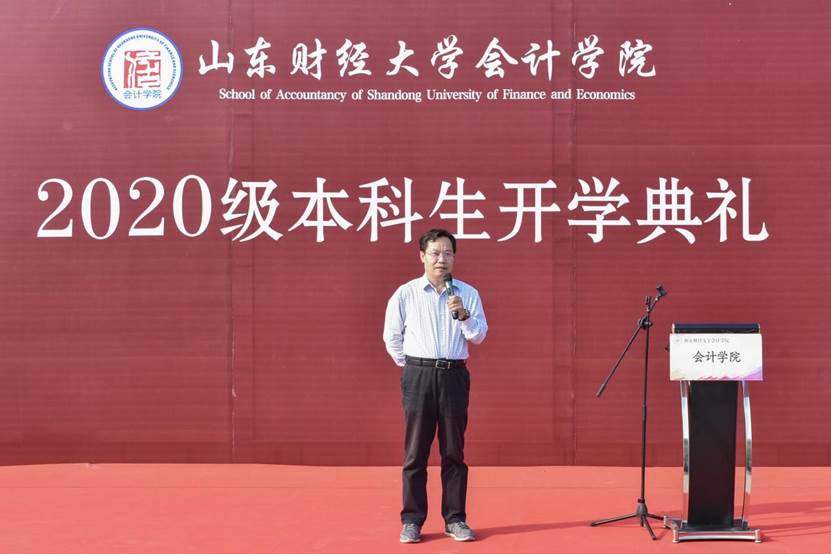 王爱国院长分别从“为什么读书”和“为什么学会计”两个方面阐述了读书的重要性和选择会计类专业的正确性。他表示,读书是改变命运的唯一途径,希望同学们通过博览群书构建宏大的通识、经济和管理知识基础,树立起与时代主题同心所向的理想信念,顺应创新驱动发展的时代要求,用知识打造最闪亮的青春名片。他指出,会计具有维护产权制度、明确利益分配的重要职能,而我校智能会计专业在全国乃至全世界具有引领地位,新生应时刻保持创新意识,志存高远发奋治学,在合作竞争中实现共赢,成为对家庭、社会和国家有用的栋梁之才。