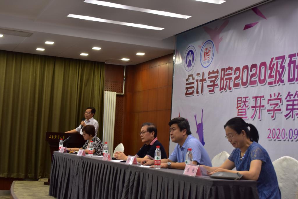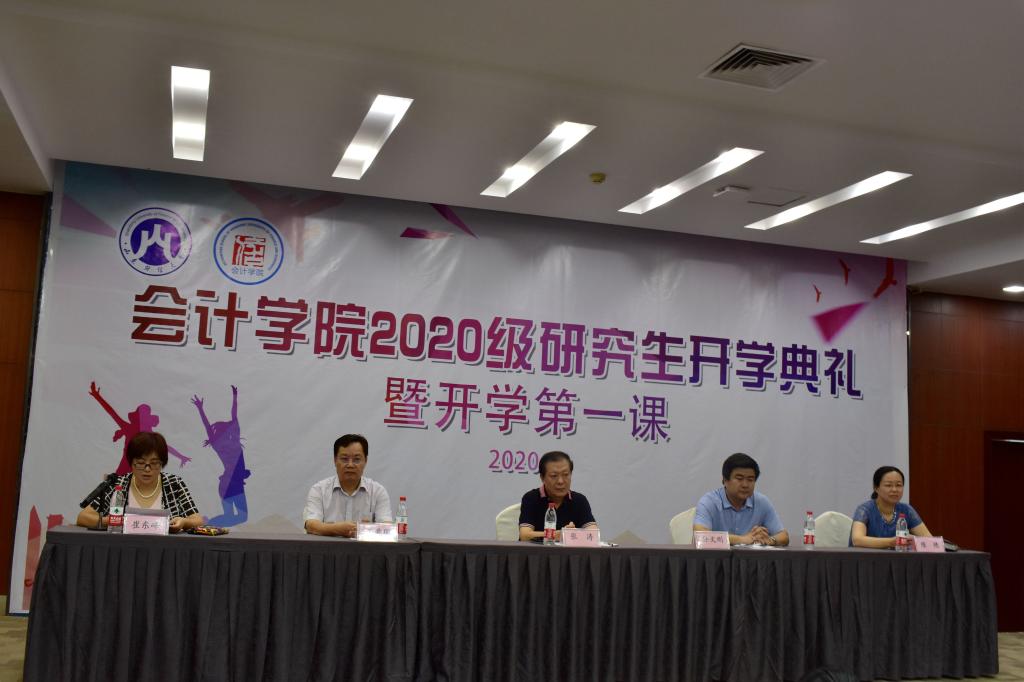 典礼开始由王爱国院长致辞。王院长首先对2020级研究生的到来表示热烈欢迎和诚挚祝贺,并结合会计学、经济学知识体系的发展历史,鼓励同学们研读经济管理类的经典名著,以避免在日后学习研究中出现常识性错误。同时,王院长还传递了对新生的希冀,望其成为具备法制思维和契约精神的“完人”。