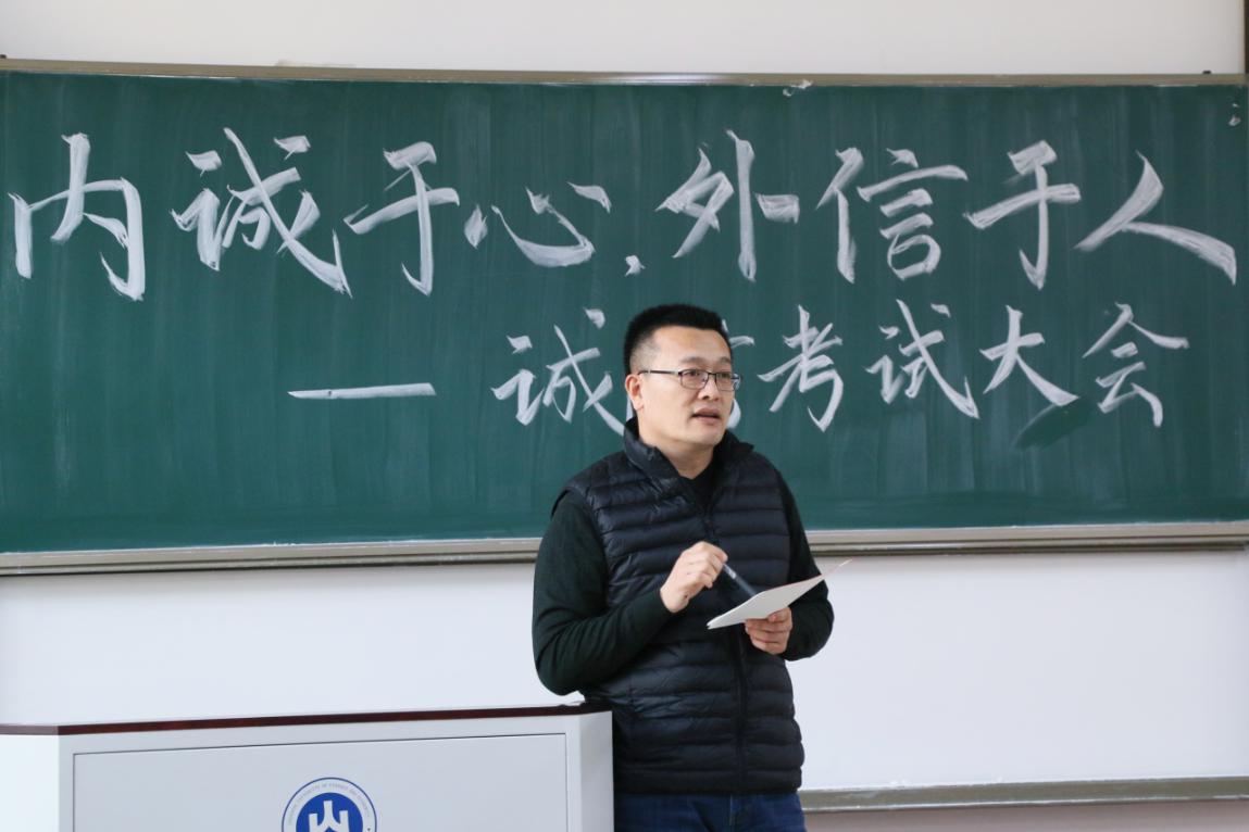 12月20日中午12:30,国外足球预测网站 于在圣井校区6-120教室举行诚信考试大会,进一步加强考风考纪教育,营造公平公正、诚实守信的考试环境。国外足球预测网站 辅导员岳勇、王文伟老师和18、19级学生代表参加活动,会议由刘越西主持。