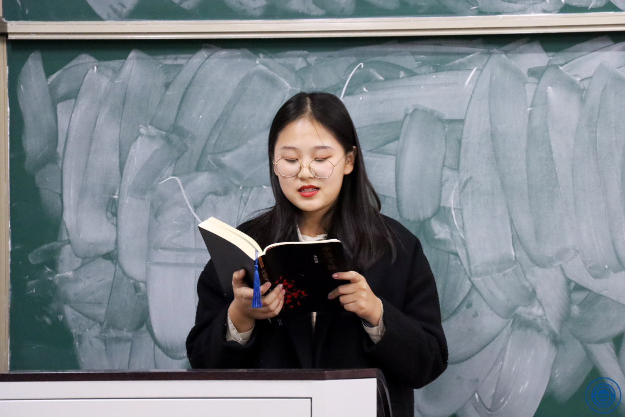 会计1904班的孙宁宙和韦萧轩同学为我们带来了诗歌朗诵《闪耀吧,青春的火光》,在激情澎湃的朗诵中,我们发自内心的感慨,纵使前进的道路漫长曲折,但谁也不能阻挡,祖国给我以力量。