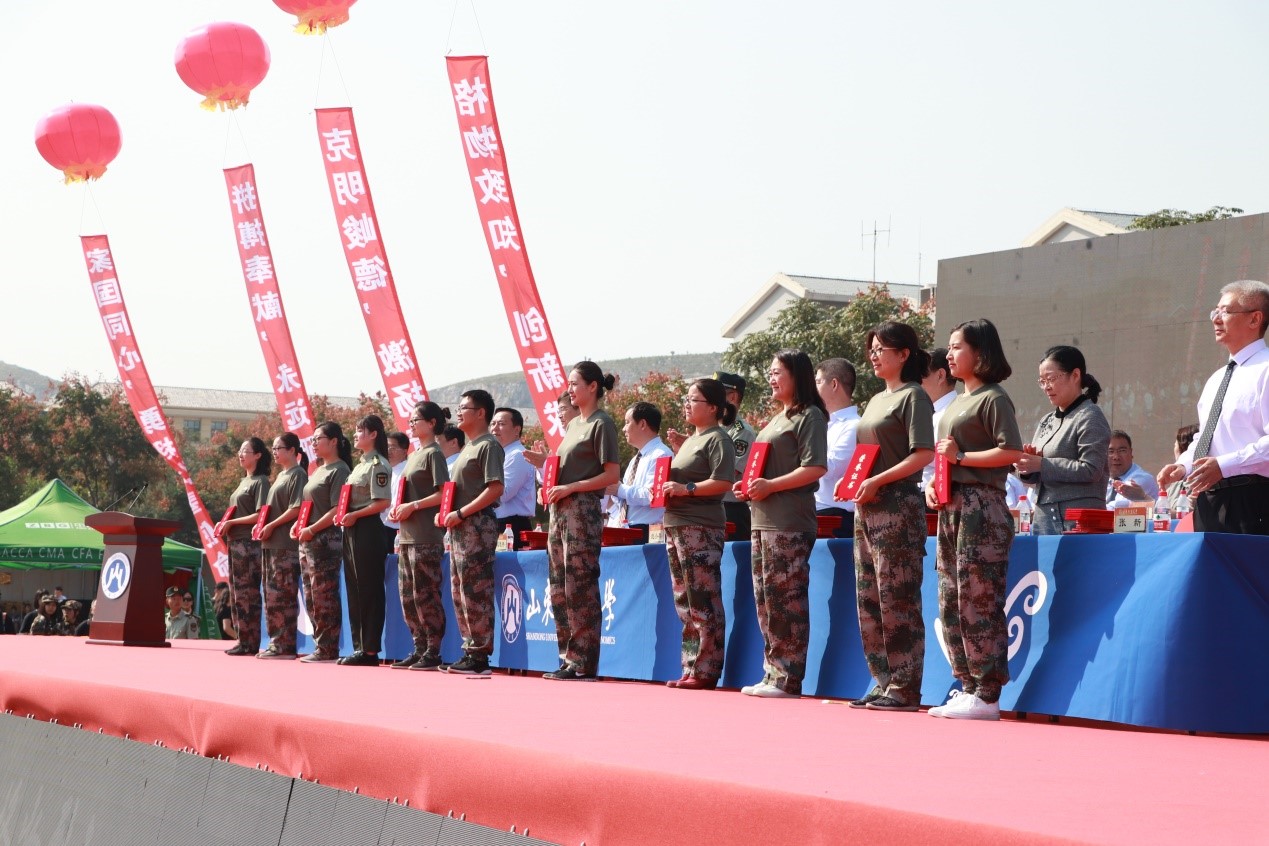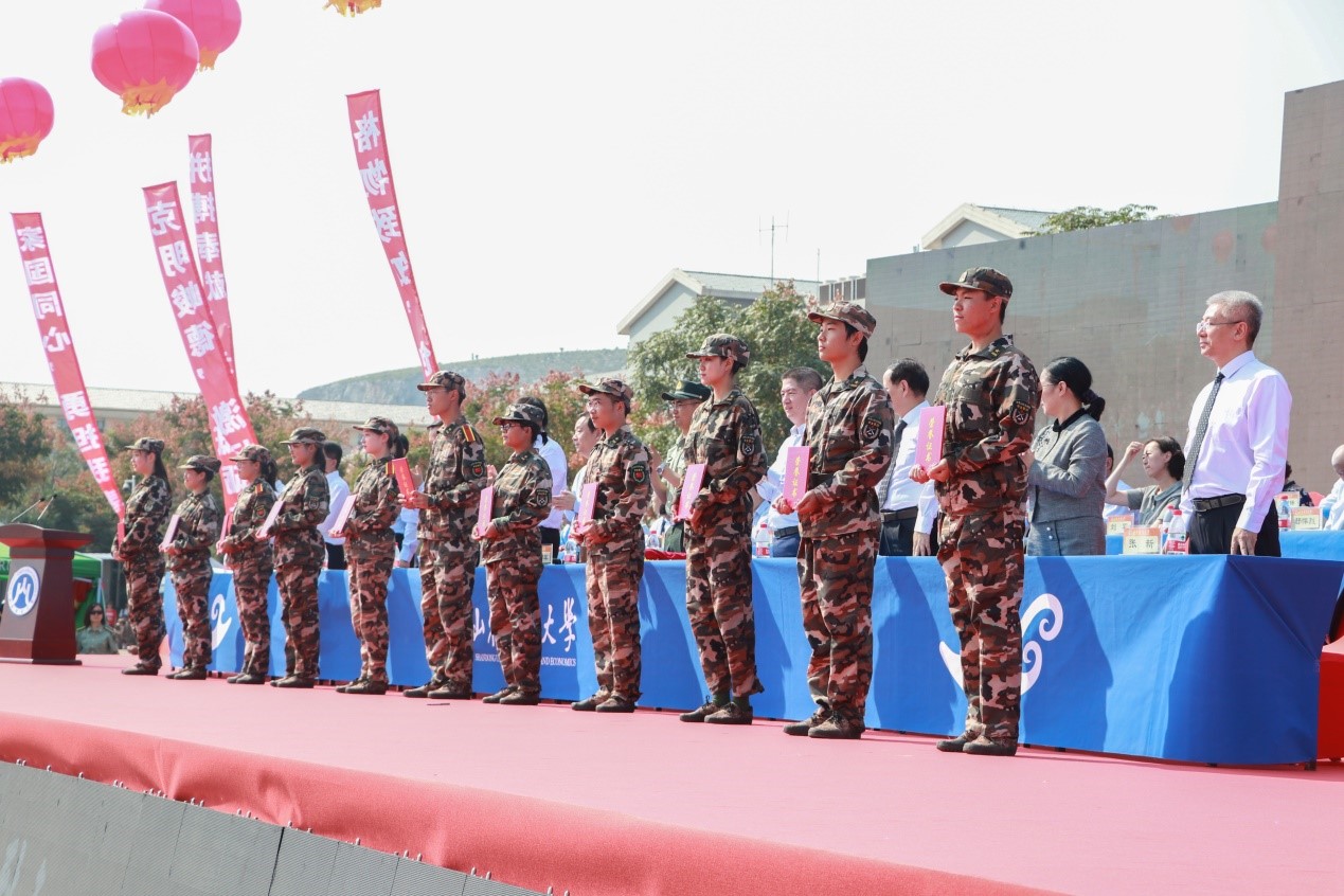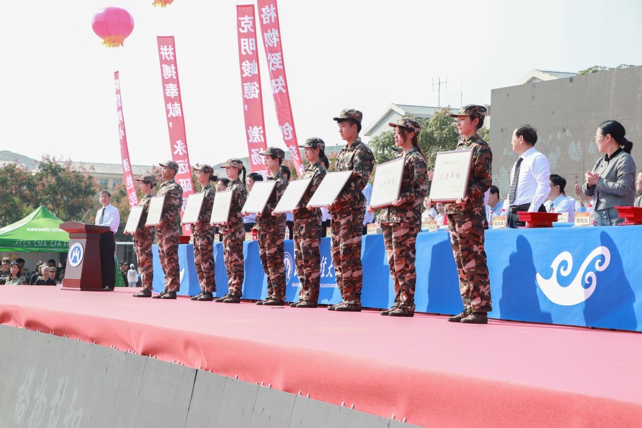 荣获“军训先进工作单位” 称号;王文伟老师荣获“军训先进工作者”称号;韩笑薇、朱悦、李呈明等80名同学荣获优秀新生入学奖学金;张念国、杨超然、姚甲琳等20名同学荣获生源基地优秀学生奖学金;于飞、邰佳伟、娄智淳等51名同学荣获“军训优秀学生”称号。胡铭、许洪瑄、王子怡和姜梦瑶荣获“优秀志愿者”称号。(详细名单请点击附件下载)