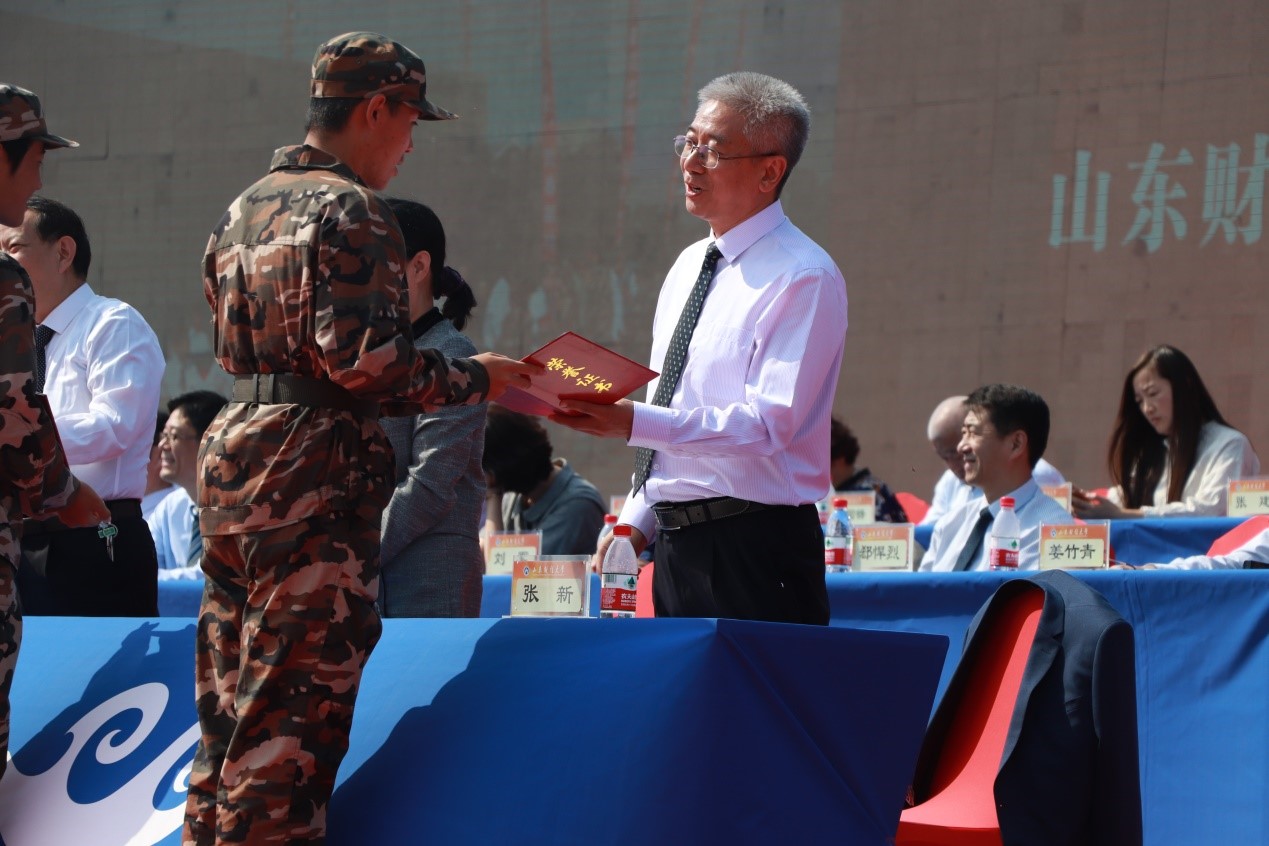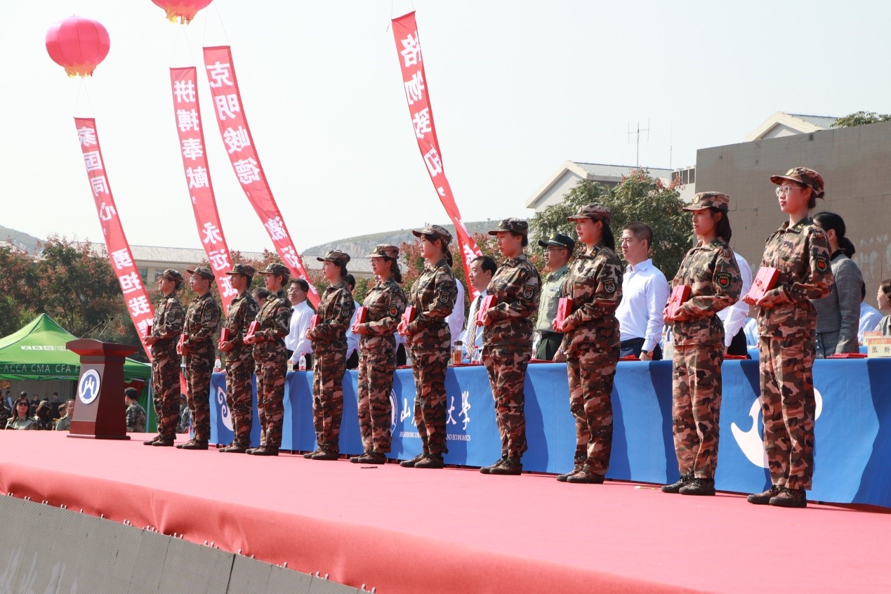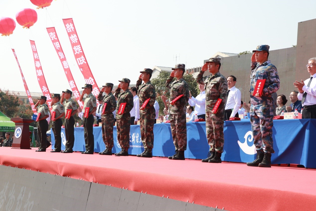 荣获“军训先进工作单位” 称号;王文伟老师荣获“军训先进工作者”称号;韩笑薇、朱悦、李呈明等80名同学荣获优秀新生入学奖学金;张念国、杨超然、姚甲琳等20名同学荣获生源基地优秀学生奖学金;于飞、邰佳伟、娄智淳等51名同学荣获“军训优秀学生”称号。胡铭、许洪瑄、王子怡和姜梦瑶荣获“优秀志愿者”称号。(详细名单请点击附件下载)