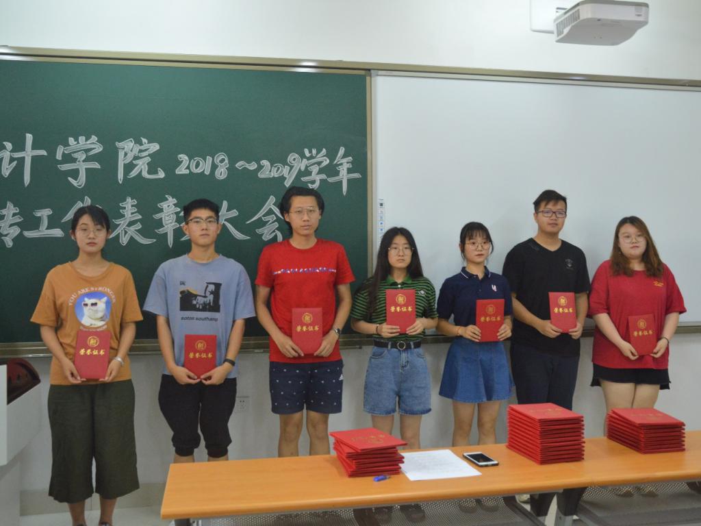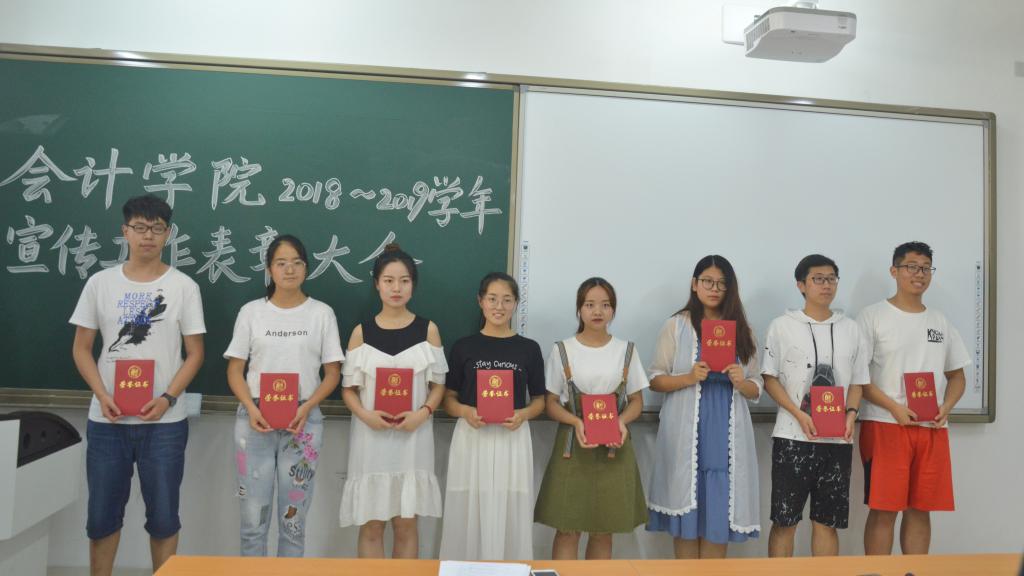主持人宣读国外足球预测网站 “优秀宣传工作者”表彰名单,曹婧和孙炯明老师为获奖同学颁奖并合影留念。随后,现场还就宣传工作开展过