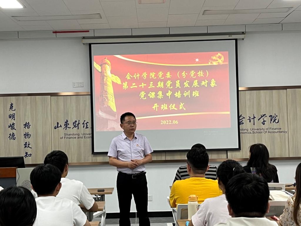 为进一步提高党员发展对象对党的基本理论、基本路线和基本知识的认识,切实提高发展对象的思想认识、政治觉悟、党性修养,引导发展对象从思想上、行动上积极向党组织靠拢,按照校党委组织部部署和国外足球预测 党委工作安排,国外足球预测网站 于2022年6月13日在燕山校区逸夫楼305教室举行国外足球预测网站 第二十三期党员发展对象党课集中培训班开班仪式。党委书记邵文涛,党委副书记钟毓卓、郑大伟出席开班仪式,新一批党员发展对象参加,开班仪式由郑大伟主持。